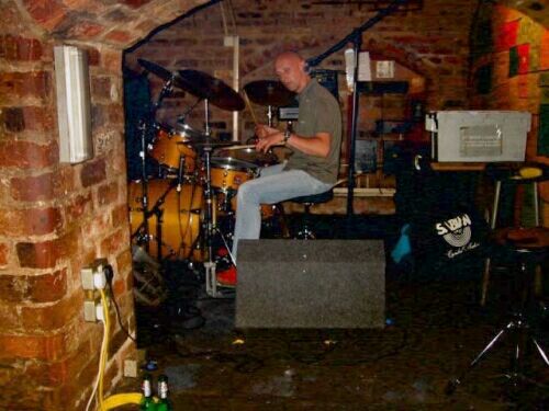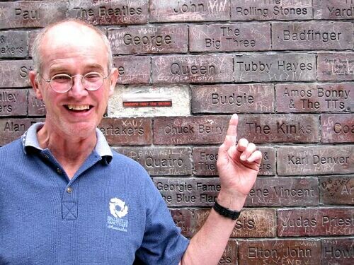 Peter Boot with his brick in the wall of fame at the Cavern. Our incredible Host and organizer of the Parkinson's benefit. |